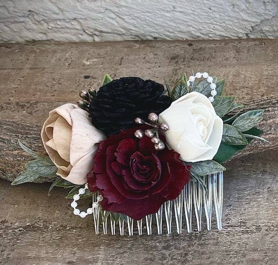 Wedding Wood Flower Bouquet Dark Red Black Rose Ivory Etsy